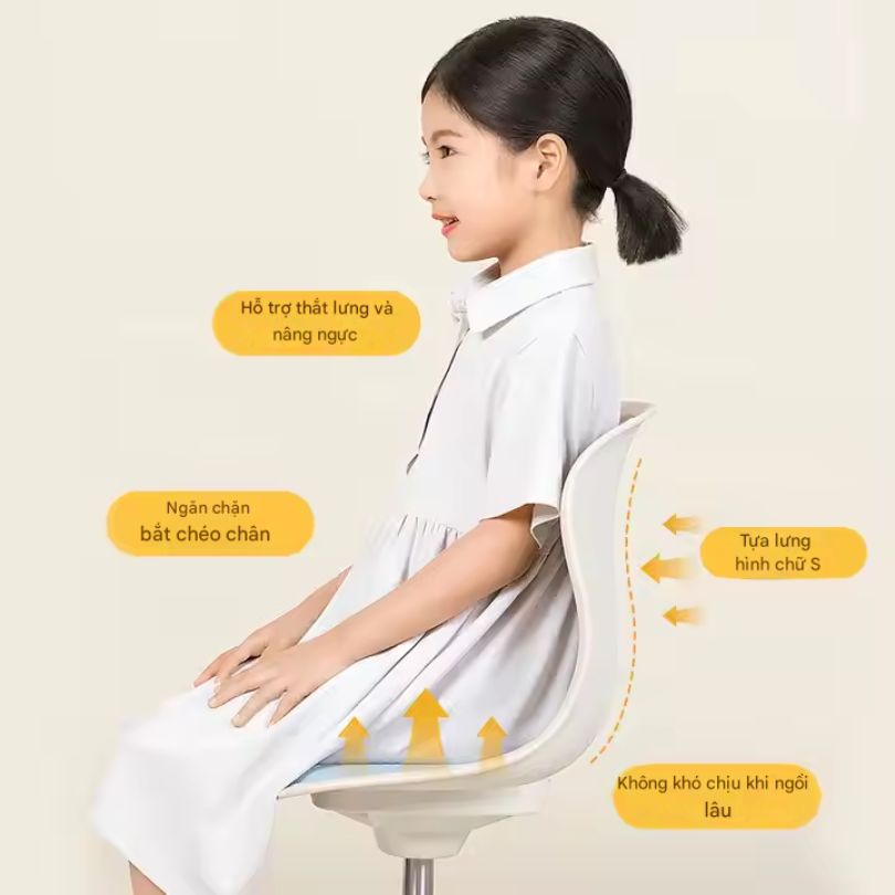 ✅ 1. Thiết kế công thái học giúp bé ngồi đúng tư thế