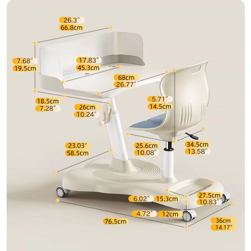 - Chức năng: Điều chỉnh độ cao bàn và ghế linh hoạt