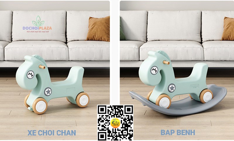 Bập bênh ngựa kết hợp xe chòi chân cho bé 2022 HKCBB4