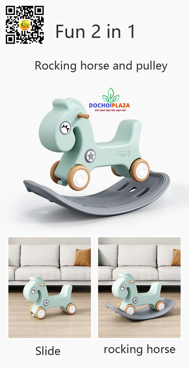 Hình ảnh Bập bênh ngựa kết hợp xe chòi chân cho bé 2022 KBBDC01 - Size 78*46*40cm- Cao cấp 2022