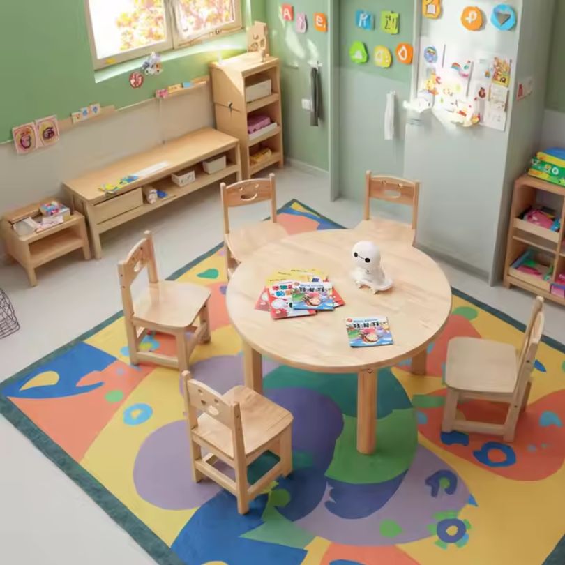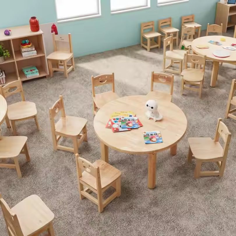 Bộ Bàn Ghế Gỗ Tròn Trẻ Em – An Toàn, Thẩm Mỹ, Hoàn Hảo Cho Lớp Học Mầm Non