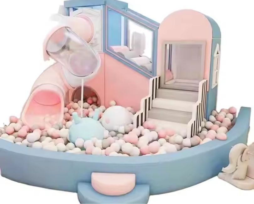 - Trong nhà: Thiết kế nhỏ gọn, tối ưu không gian phòng chơi/phòng khách. Một số mẫu tích hợp xích đu, bóng rổ, nhà bóng mini cực kỳ tiện lợi.
