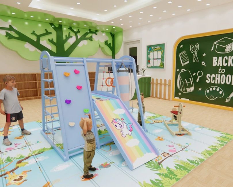 - Trong nhà: Phù hợp với căn hộ chung cư, nhà phố, villa có phòng chơi riêng hoặc không gian sinh hoạt rộng rãi.