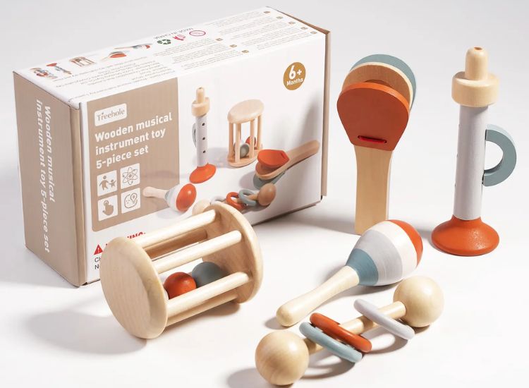 - Tên sản phẩm: Bộ đồ chơi 5 nhạc cụ Montessori cho trẻ mới biết đi