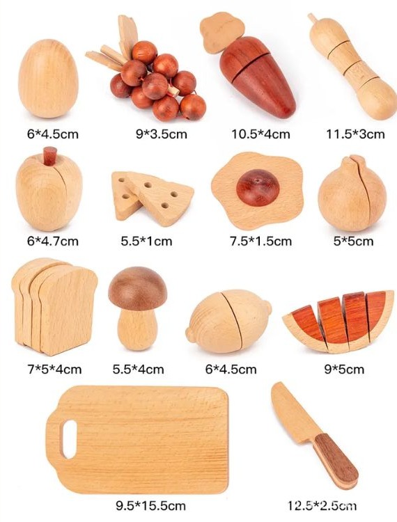 - Sản phẩm được làm từ gỗ tự nhiên, bề mặt được xử lý nhẵn mịn, không có cạnh sắc nhọn, đảm bảo an toàn tuyệt đối cho trẻ nhỏ. Bộ đồ chơi mô phỏng các loại hoa quả quen thuộc với màu sắc bắt mắt, dễ nhận biết. Các chi tiết trong bộ sản phẩm được kết nối bằng nam châm giúp bé có thể “cắt” và “ghép” lại dễ dàng, mang đến cảm giác chơi thực tế như trong căn bếp thật.