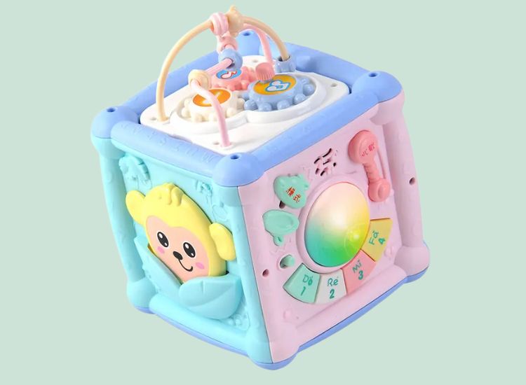 Với trẻ từ 6 tháng tuổi, phụ huynh nên cùng con khám phá từng mặt của hộp. Hướng dẫn bé ấn phím nhạc, lắp khối hình đúng vị trí, quay bánh răng hoặc luồn hạt để tạo âm thanh. Sau vài lần chơi cùng, bé sẽ tự ghi nhớ các vị trí và bắt đầu chơi độc lập. Mỗi ngày chỉ nên để bé chơi 15 – 30 phút để tránh quá tải và giúp trẻ luôn hứng thú khi quay lại.