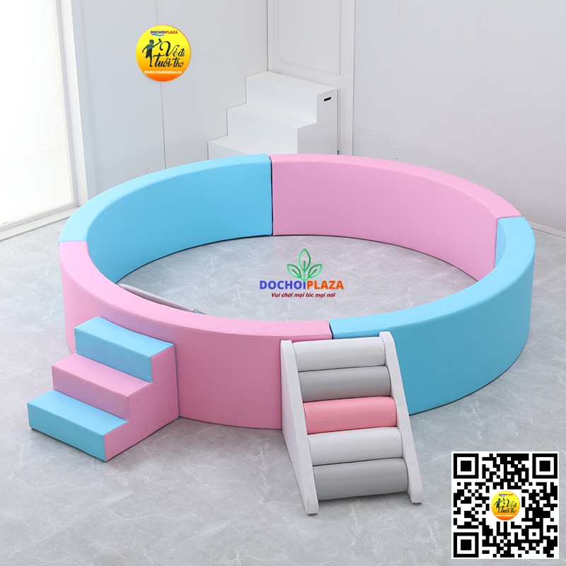 Bộ Khung quây bóng - nhà banh nhà bóng Tròn KBKNB03 bằng gỗ bọc mút và da cho bé vui chơi giải trí đa sắc mầu