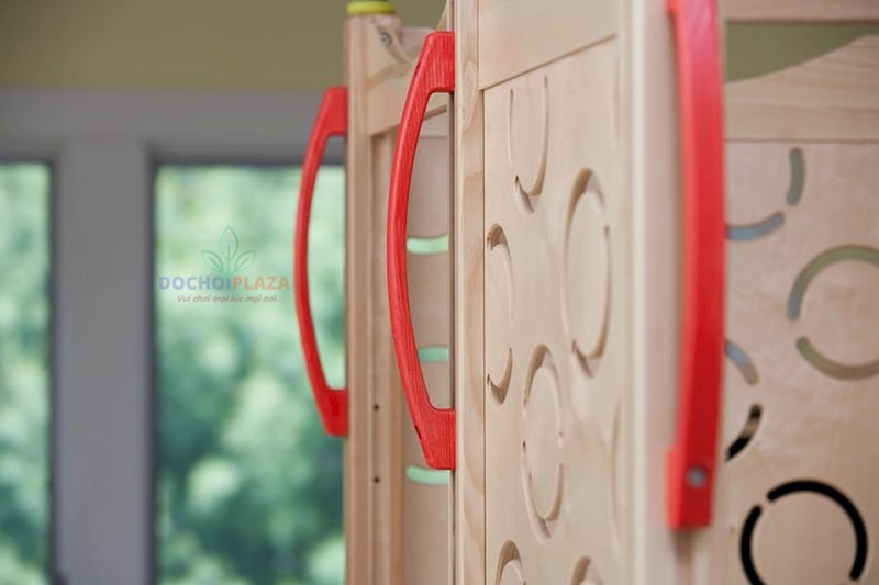 - Bo cạnh của Bộ cầu trượt liên hoàn bằng gỗ cao cấp cạnh gỗ bo cong giáp mịn an toàn, tránh làm đau các bé khi va phải.