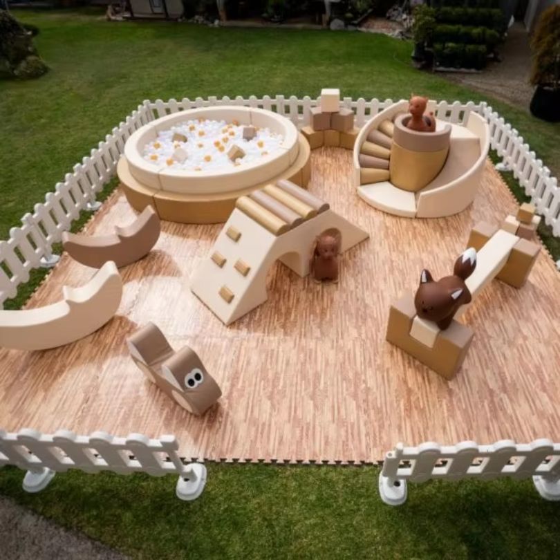 Bé không chỉ cần học cách đi mà còn cần học cách khám phá thế giới xung quanh qua vận động. Bộ vận động mềm được thiết kế giống như một “sân chơi thu nhỏ” ngay trong ngôi nhà của bạn. Những khối mousse bọc da simili mềm mại, an toàn, với thiết kế đa dạng từ cầu trượt, dốc leo núi cho đến đường hầm chui, tạo nên một thế giới mà bé có thể tự do sáng tạo và vận động theo cách riêng của mình.