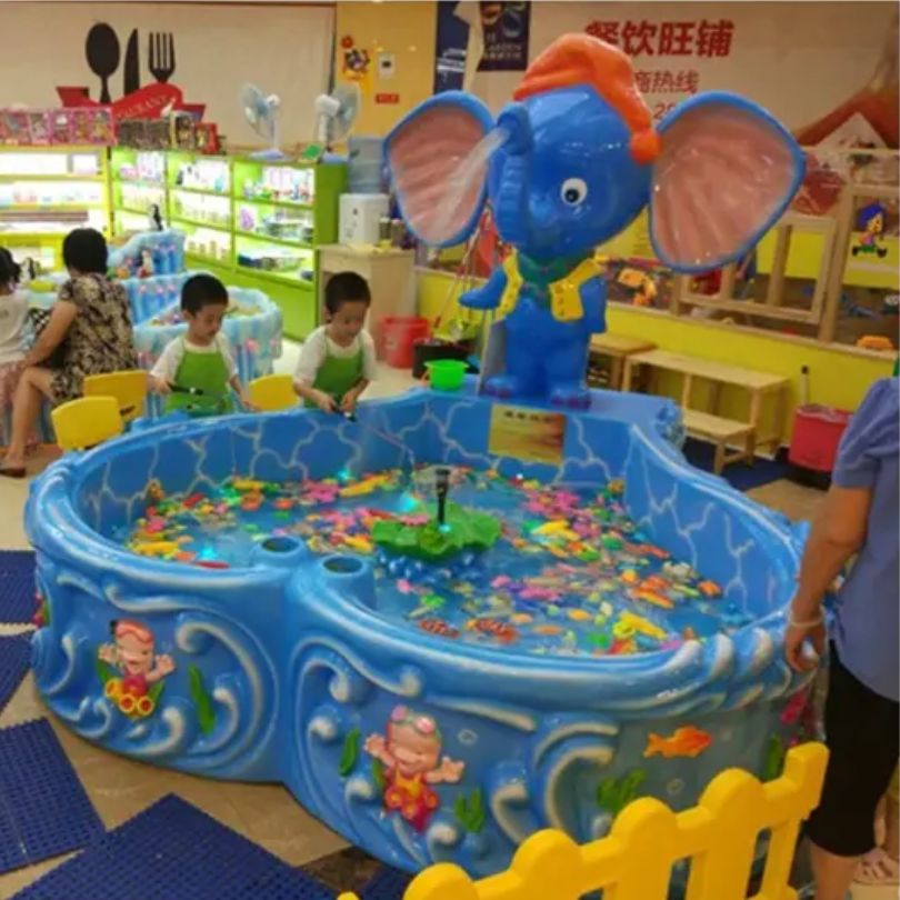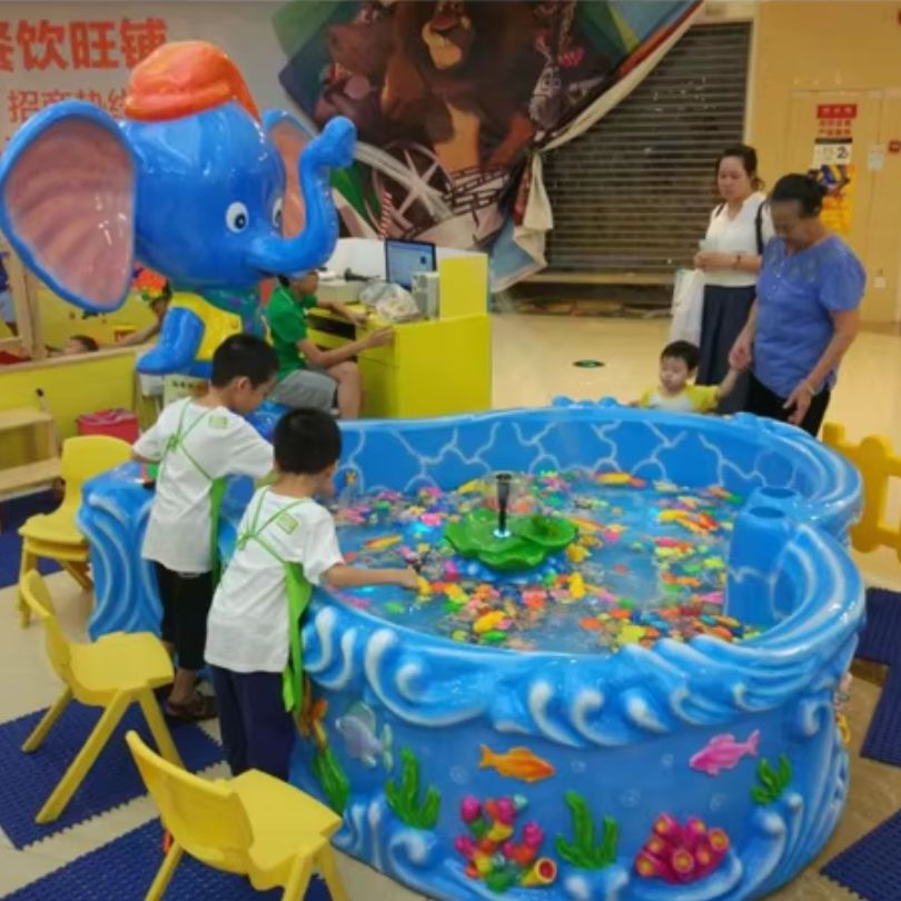 🌀 Hồ nước hình trái tim: Bể nước thiết kế dạng trái tim bắt mắt, tạo điểm nhấn sinh động với các họa tiết sóng biển và sinh vật đại dương xung quanh. Bên trong có hệ thống tạo dòng nước xoay nhẹ, giúp các chú cá nhựa di chuyển liên tục – làm tăng thử thách và độ hấp dẫn khi câu cá.