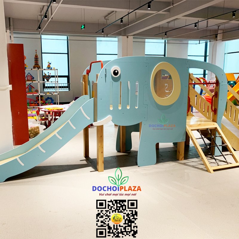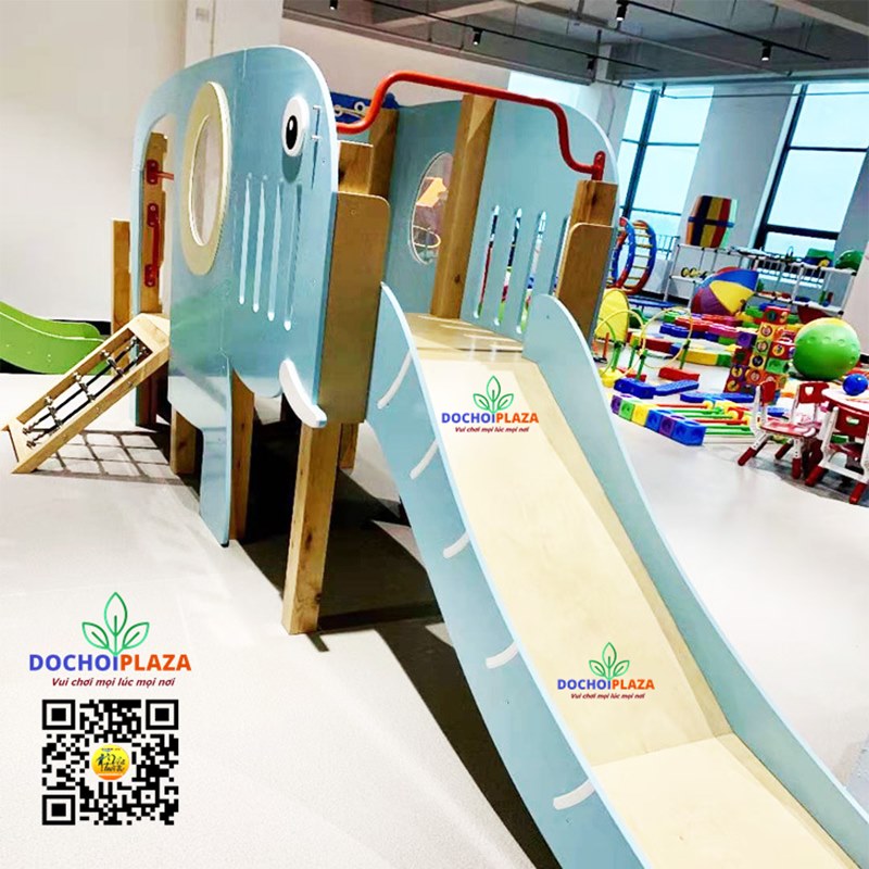 Cầu trượt chú voi con Bằng gỗ cao cấp là mẫu đồ chơi vận động đa năng phổ biến nhất có thể sử dụng cả trong nhà hoặc ngoài trời phù hợp cho các bé vui chơi trong khu vui chơi,nhà trẻ,hồ bóng