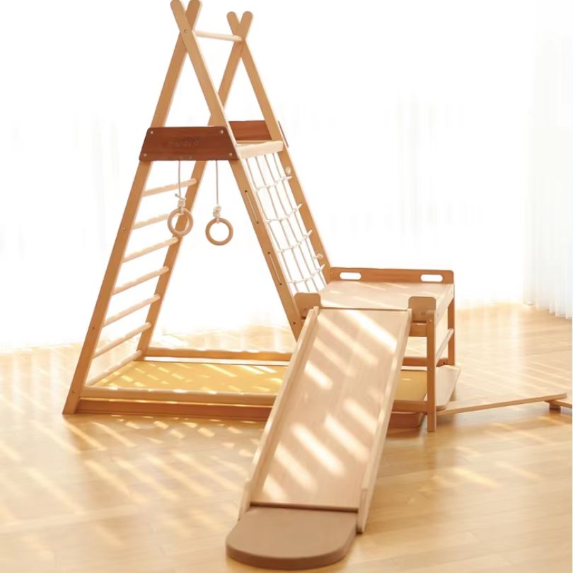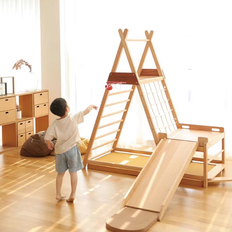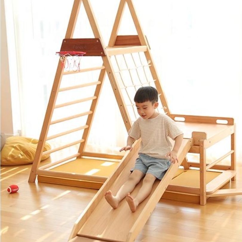 Bộ Leo Trèo & Cầu Trượt 2 Trong 1 được thiết kế thông minh, kết hợp nhiều trò chơi vận động như leo thang, leo núi, trượt, chơi bóng rổ, chui hầm… tất cả trong một bộ khung gỗ chắc chắn và an toàn. Với diện tích chỉ khoảng 0.7m², sản phẩm phù hợp cho nhiều không gian khác nhau, từ phòng khách, phòng chơi trẻ em cho tới sân vườn nhỏ có mái che.