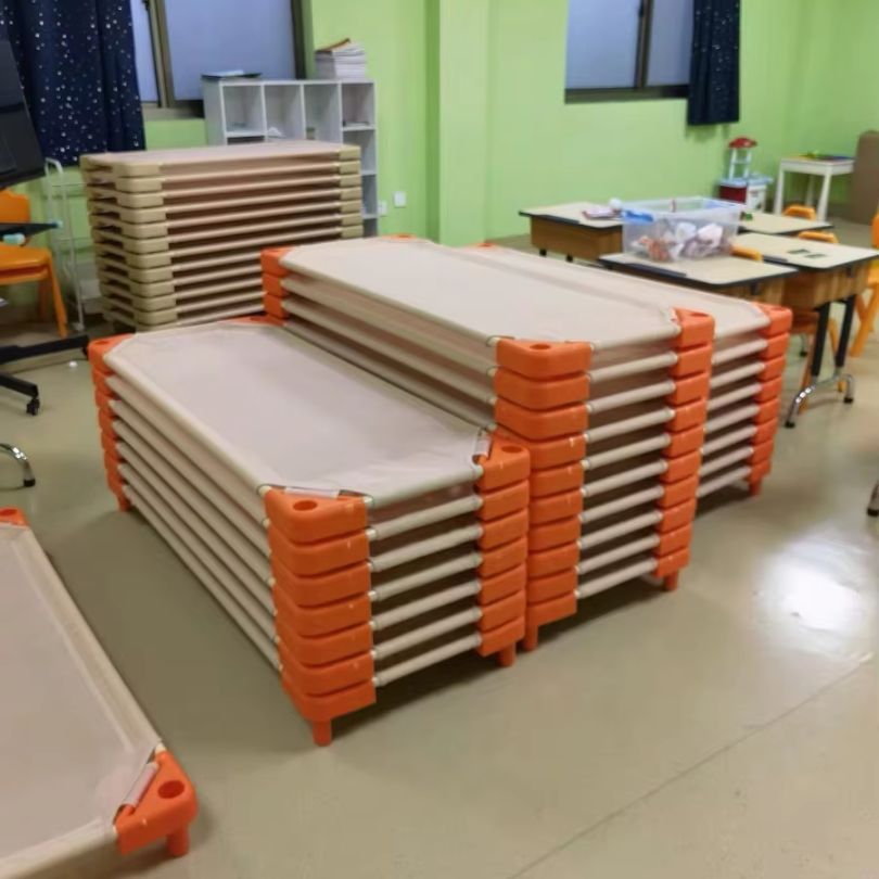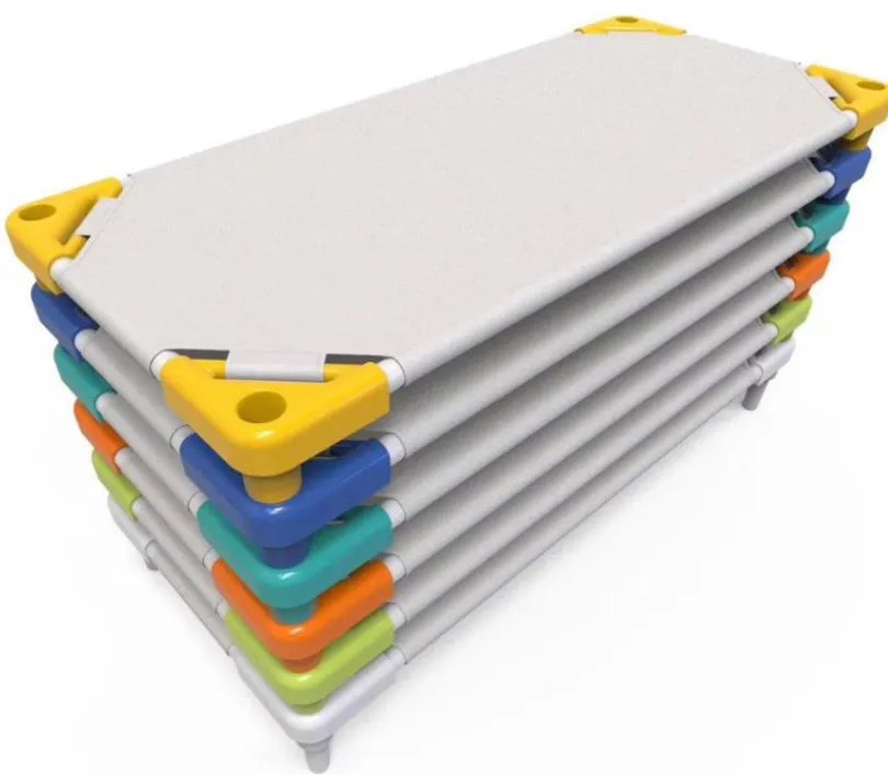 - Thiết kế xếp chồng thông minh: Có thể xếp gọn nhiều giường lên nhau sau giờ nghỉ trưa, tiết kiệm không gian lớp học, dễ di chuyển và vệ sinh.