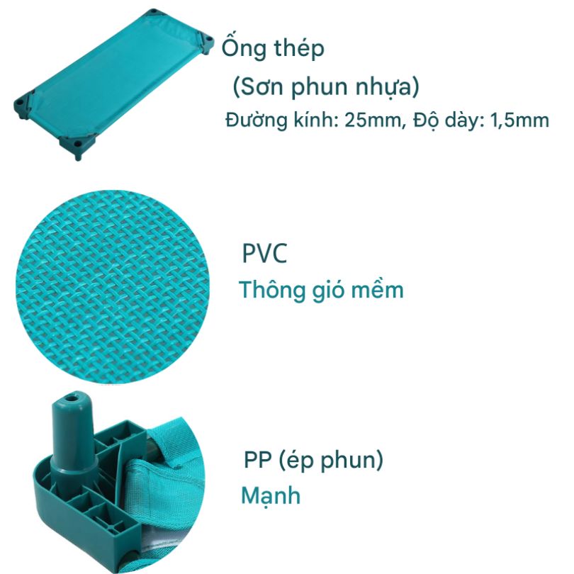 - Bề mặt giường: Vải bạt lưới thoáng khí, đàn hồi, giúp trẻ nằm dễ chịu.
