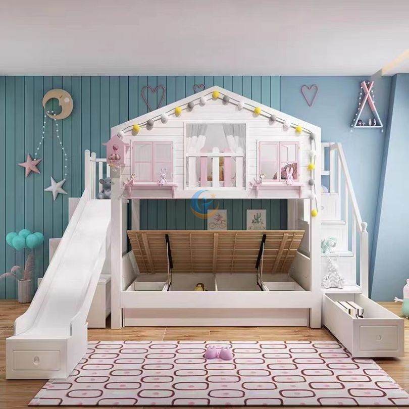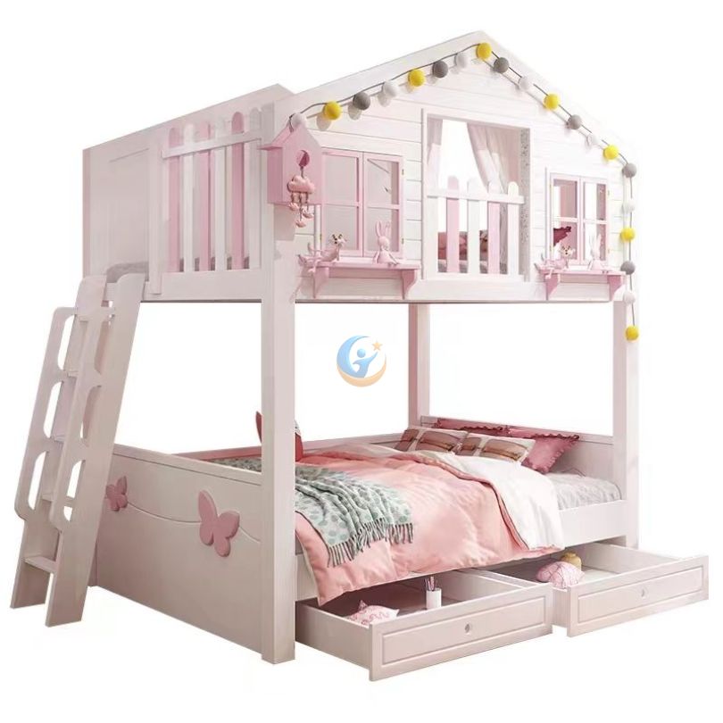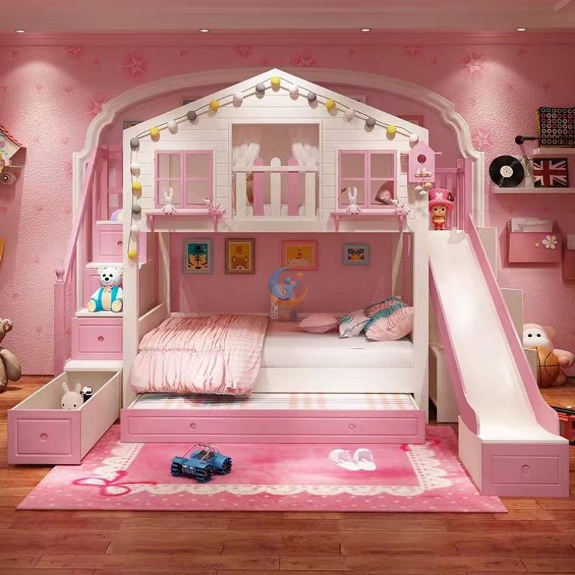 Ngôi nhà công chúa tích hợp giường ngủ, khu vui chơi, cầu thang mini, giường kéo và các góc trang trí sáng tạo. Bé vừa có nơi ngủ nghỉ thoải mái, vừa có không gian vận động, khám phá và chơi đùa an toàn. Phù hợp cho cả căn hộ nhỏ, phòng ngủ bé hoặc phòng ngủ biệt thự cao cấp.