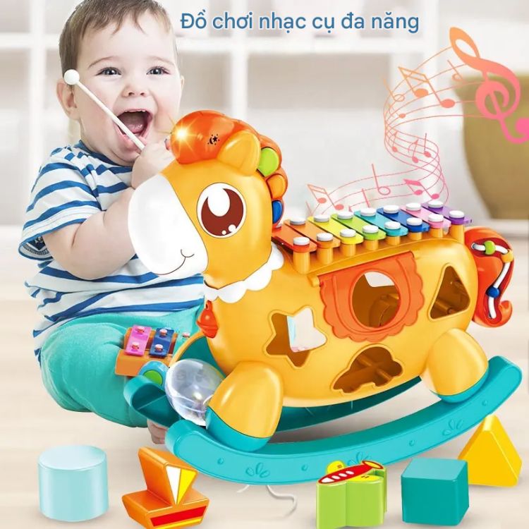| 6–12 tháng | Lục lạc, trống mềm, nhạc cụ phát sáng | Nhận biết âm thanh, phản xạ cơ bản |