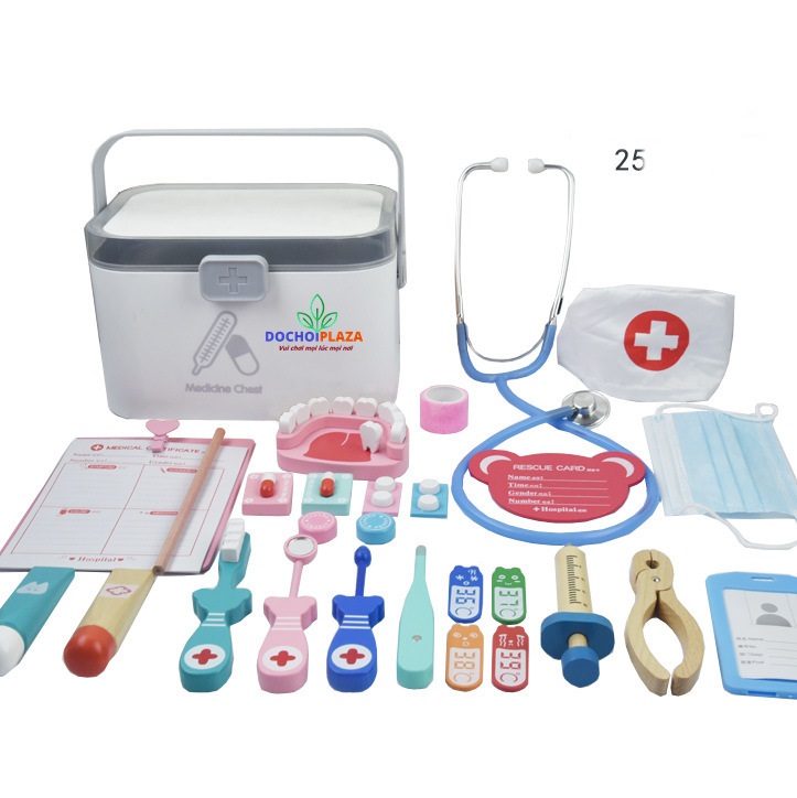 Bộ đồ chơi Bác sỹ bằng gỗ | Đồ chơi gỗ trang bị làm Bác sỹ cho bé đóng vai Bác sỹ | Đồ chơi Plaza.