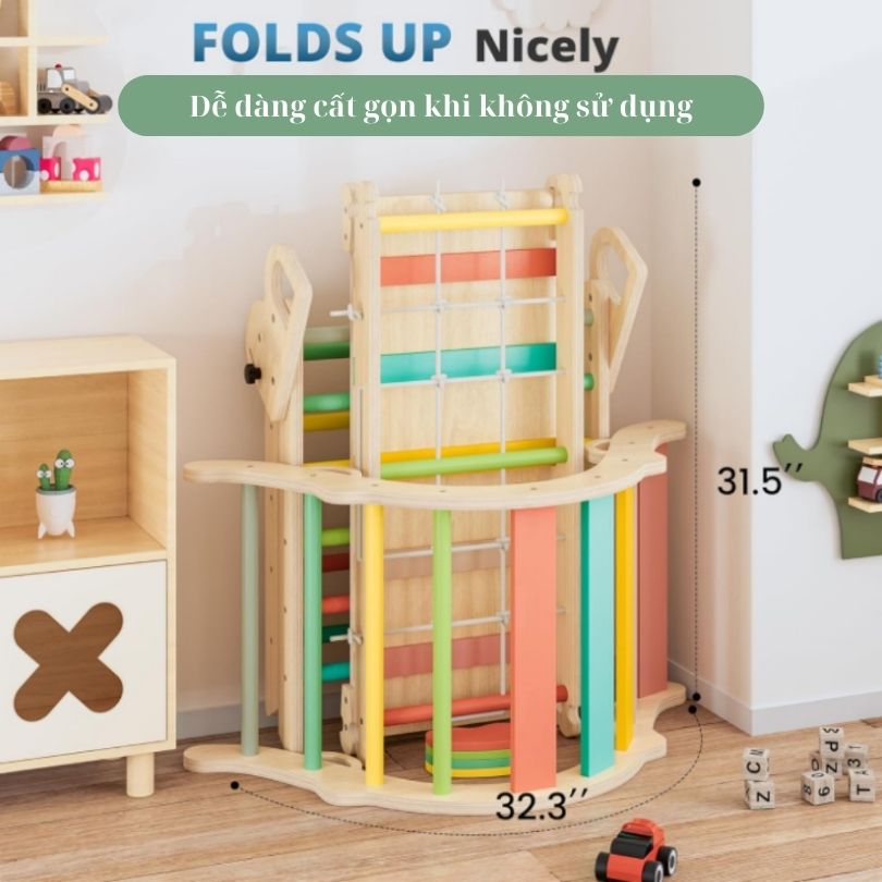 Đồ Chơi Leo Trèo Trong Nhà Montessori 8in1 Bằng Gỗ Tự Nhiên – Màu Sắc Nổi Bật