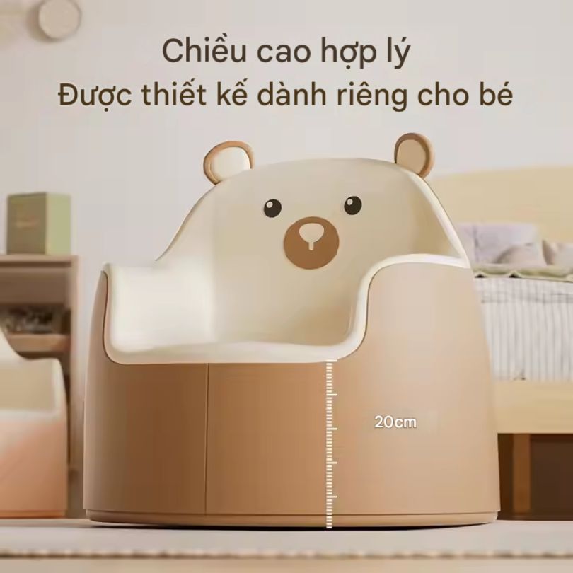 - Thiết kế hình gấu ngộ nghĩnh với tai gấu 3D và khuôn mặt dễ thương giúp bé thêm thích thú khi ngồi
