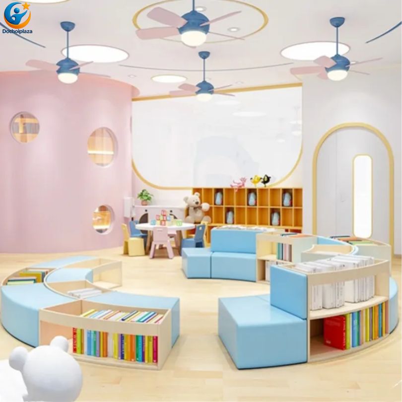 🛋️ Ghế Sofa Kết Hợp Kệ Sách Cho Trường Mầm Non – Nội Thất Đa Năng Giúp Bé Vừa Học Vừa Chơi Hiệu Quả