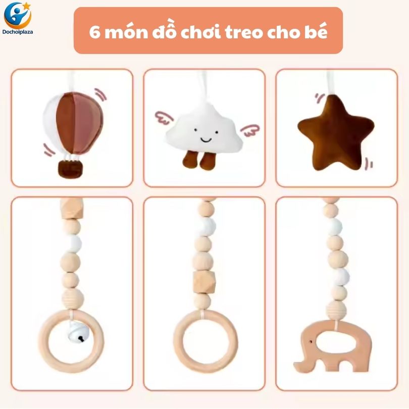 - Đa dạng đồ chơi: Tích hợp các đồ treo như chuông gỗ, thú bông, vòng tay cầm giúp kích thích nhiều giác quan.