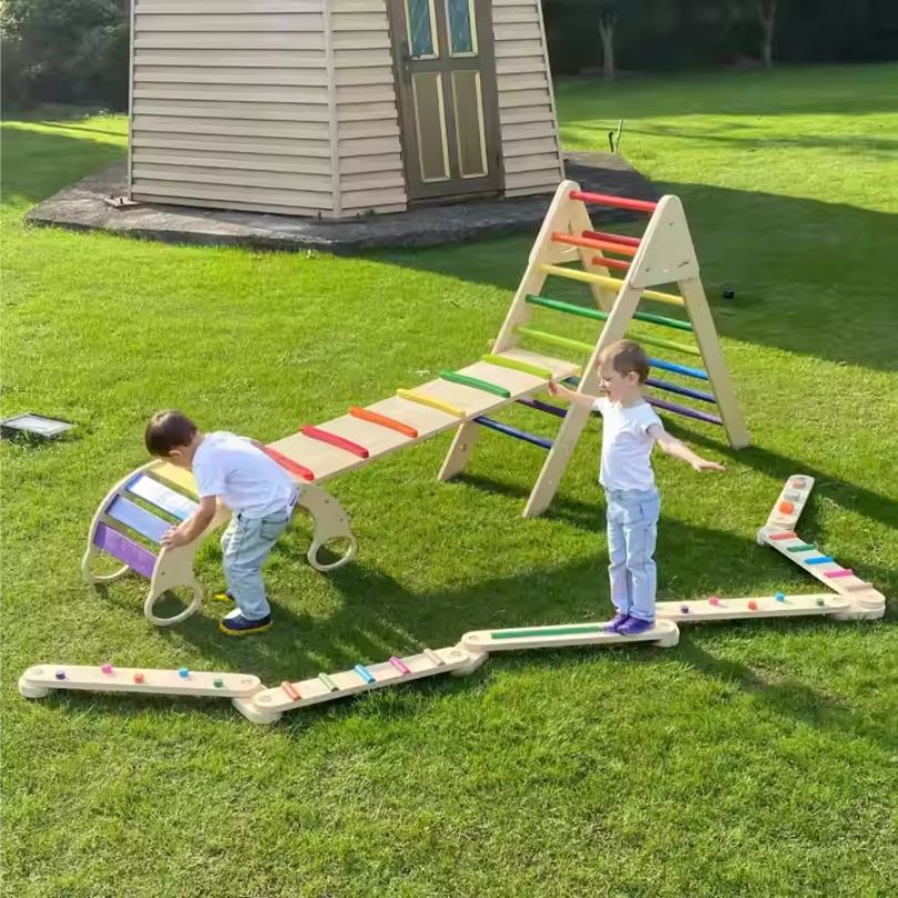 Trong giai đoạn từ 2 đến 8 tuổi, trẻ nhỏ phát triển mạnh về thể chất, kỹ năng vận động và sự tự lập. Vì vậy, việc đầu tư cho bé một không gian vui chơi an toàn – sáng tạo là điều vô cùng cần thiết. Khung gỗ leo trèo & thăng bằng cho bé là lựa chọn lý tưởng giúp trẻ rèn luyện sức bền, sự linh hoạt và khả năng kiểm soát cơ thể ngay từ những năm đầu đời.