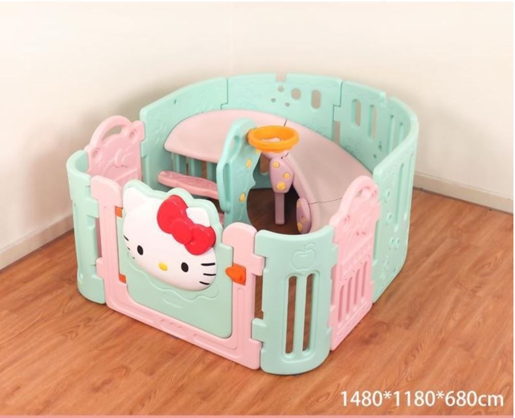 Khung Quây bóng Size 148x118x68 Cm + cầu trượt bằng nhựa Mầu hồng Mèo Kitty 2022