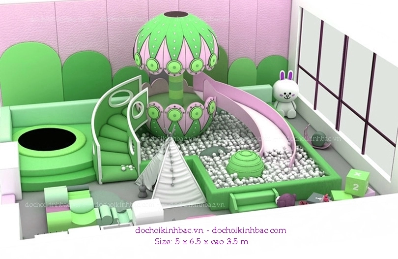 Nếu có thể, sử dụng không gian theo chiều cao. Các cầu treo, cầu trượt, hoặc các mô hình khác có thể được sắp xếp trên các tầng khác nhau để tận dụng tối đa không gian.