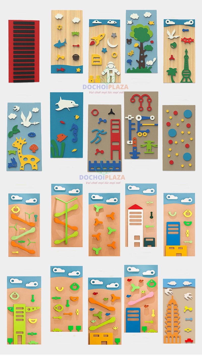 Tường leo núi thiết kế nhiều style hiện đại thời thượng kích thích các bé vận động nhiều hơn.Có thể lắp đặt luôn tại phòng ngủ cho các bé được luôn đó ạ