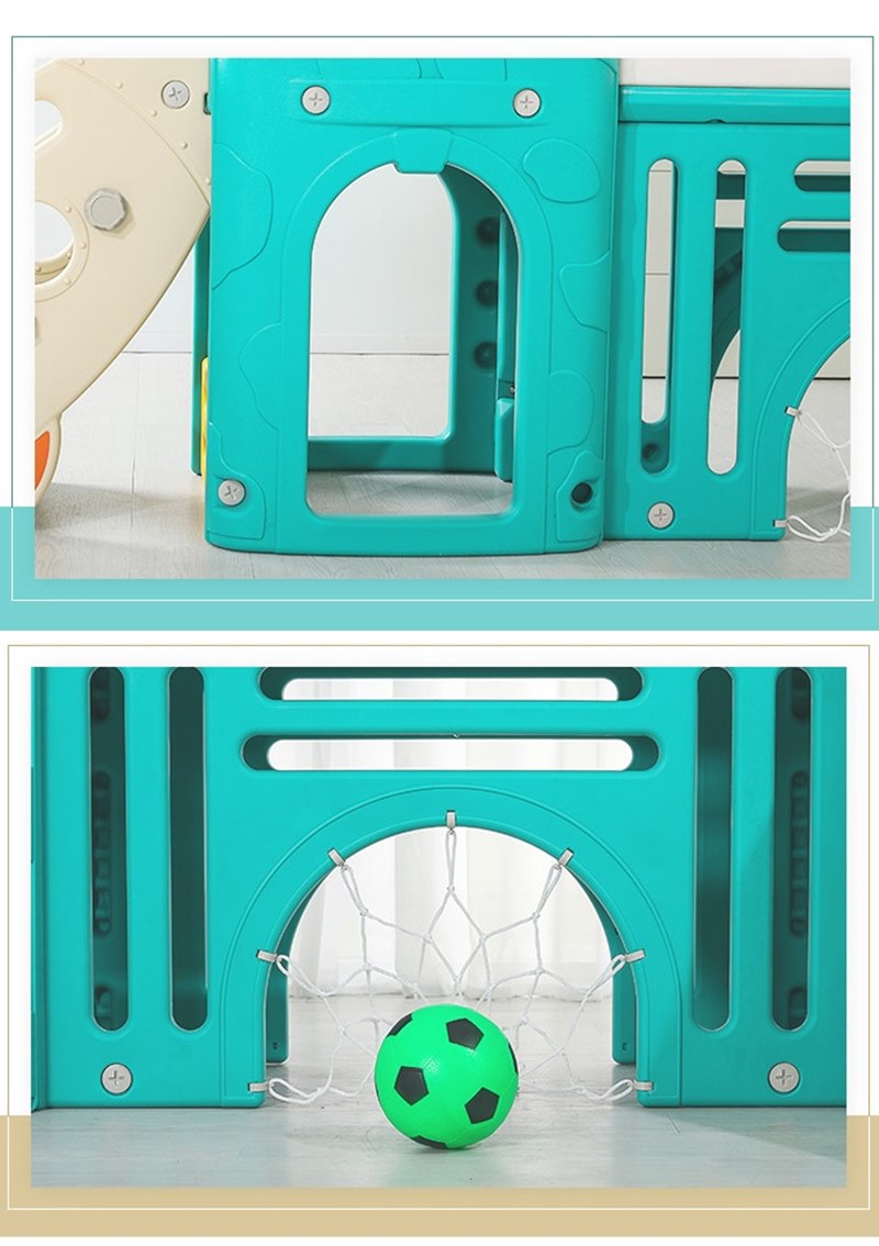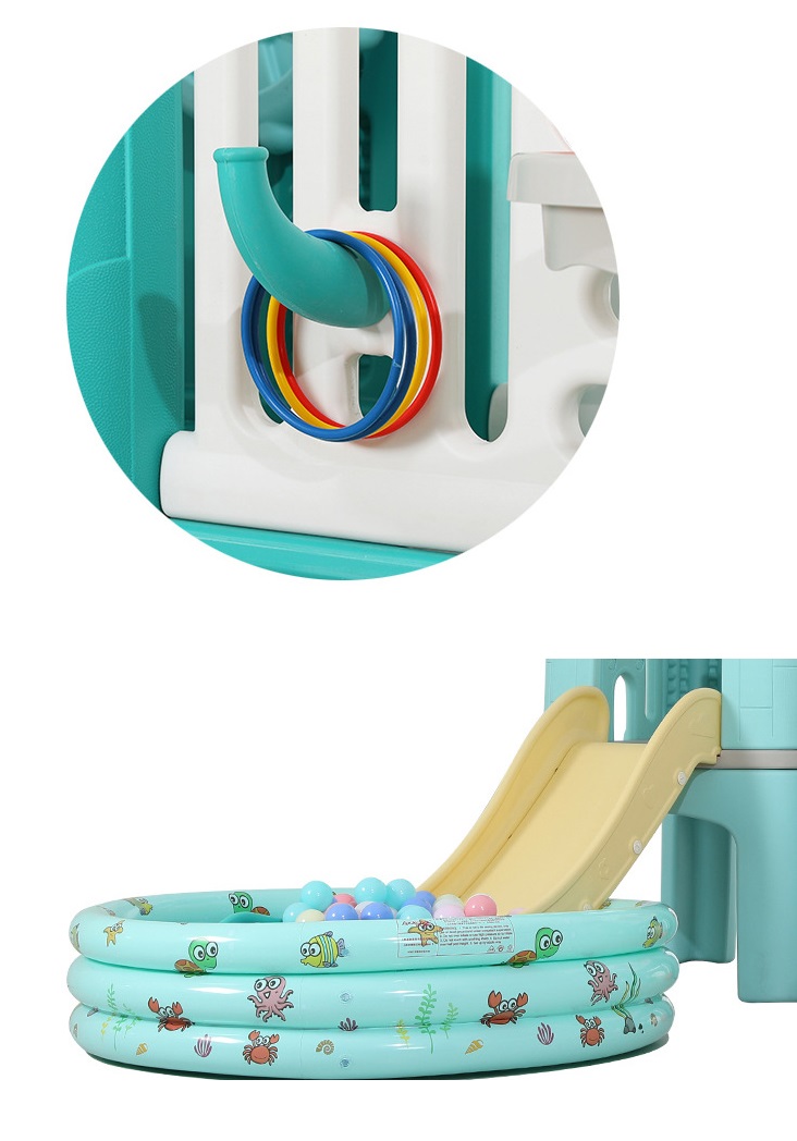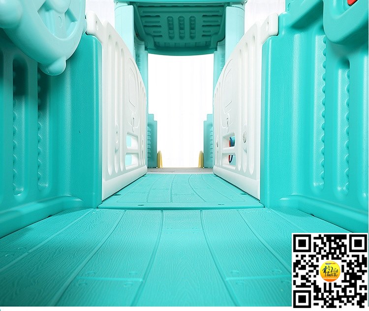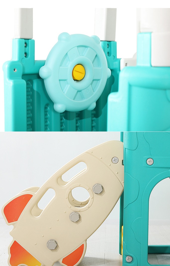 - Bo cạnh của Bộ liên hoàn cầu trượt nhà 2 khối liên hoàn nhựa bo cong an toàn, tránh làm đau các bé khi va phải.
