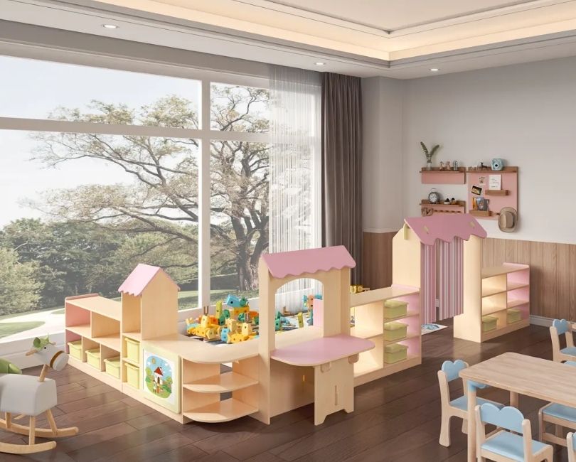 - Khu vực vui chơi – góc học tập: Phù hợp bố trí ở các góc hoạt động để bé dễ dàng lấy – cất đồ một cách khoa học.