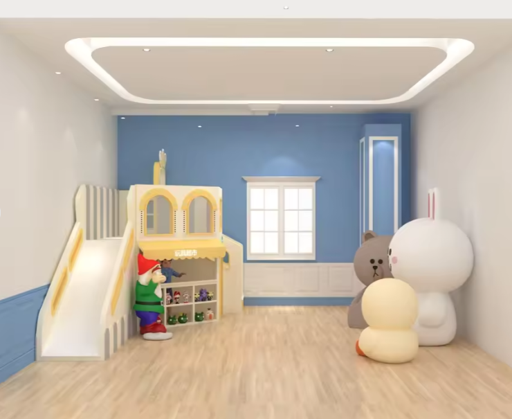 Ánh sáng dịu & vật liệu ấm: giúp không gian gần gũi, dễ chịu, phù hợp cả khi chơi lẫn nghỉ ngơi.