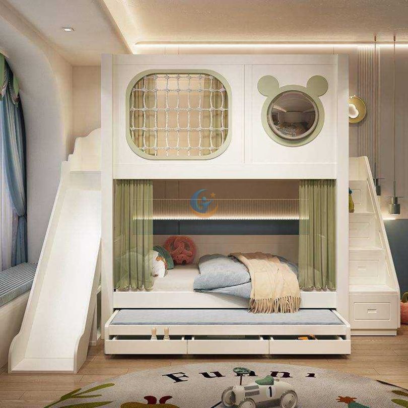 - Tối ưu không gian: Giường tích hợp vui chơi & lưu trữ giúp tiết kiệm diện tích căn phòng.