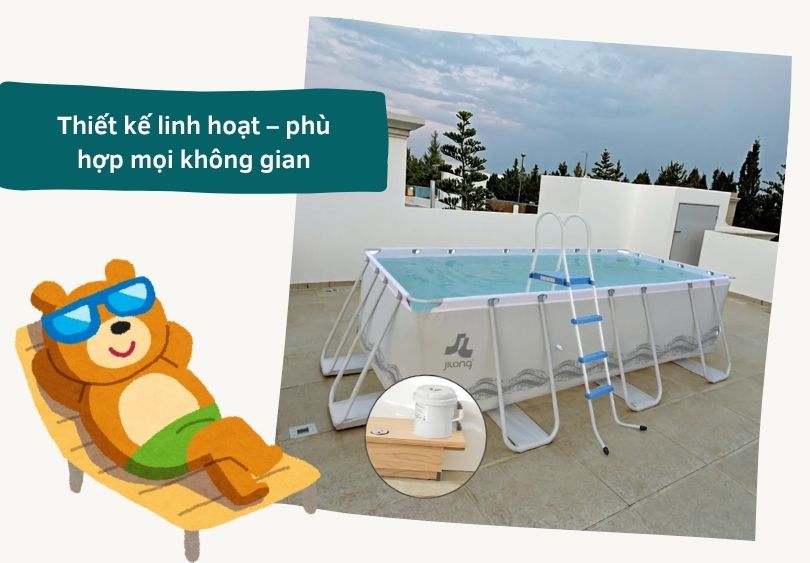 Chỉ với vài thao tác cơ bản và một vài dụng cụ đi kèm, bạn có thể tự lắp đặt bể tại nhà trong 30–60 phút. Không cần đào móng, không cần ống nước cố định. Thậm chí nhiều mẫu bể còn có video hướng dẫn chi tiết hoặc sách hướng dẫn bằng tiếng Việt. Điều này giúp tiết kiệm chi phí thuê thợ, chủ động hơn trong sử dụng và tháo lắp.