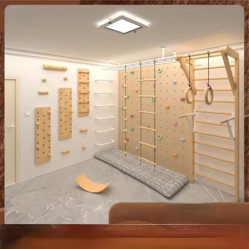 - Tích hợp đa trò chơi: Bao gồm khung leo tay, thang dây, thang gỗ, vòng treo thể lực, bám tường leo núi và khung khỉ – mang đến trải nghiệm vận động đa dạng mỗi ngày.