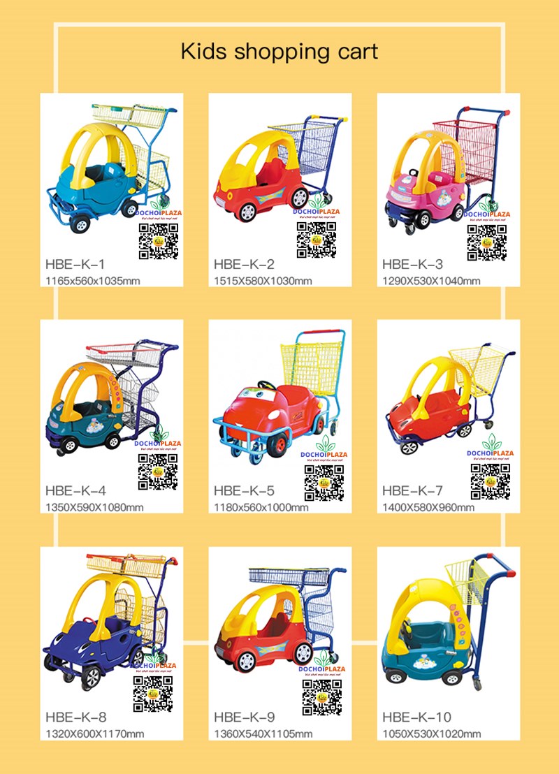 Supermarket Shopping Mall Push Convenient Colorful Kids Trolley Carts with Toy Car