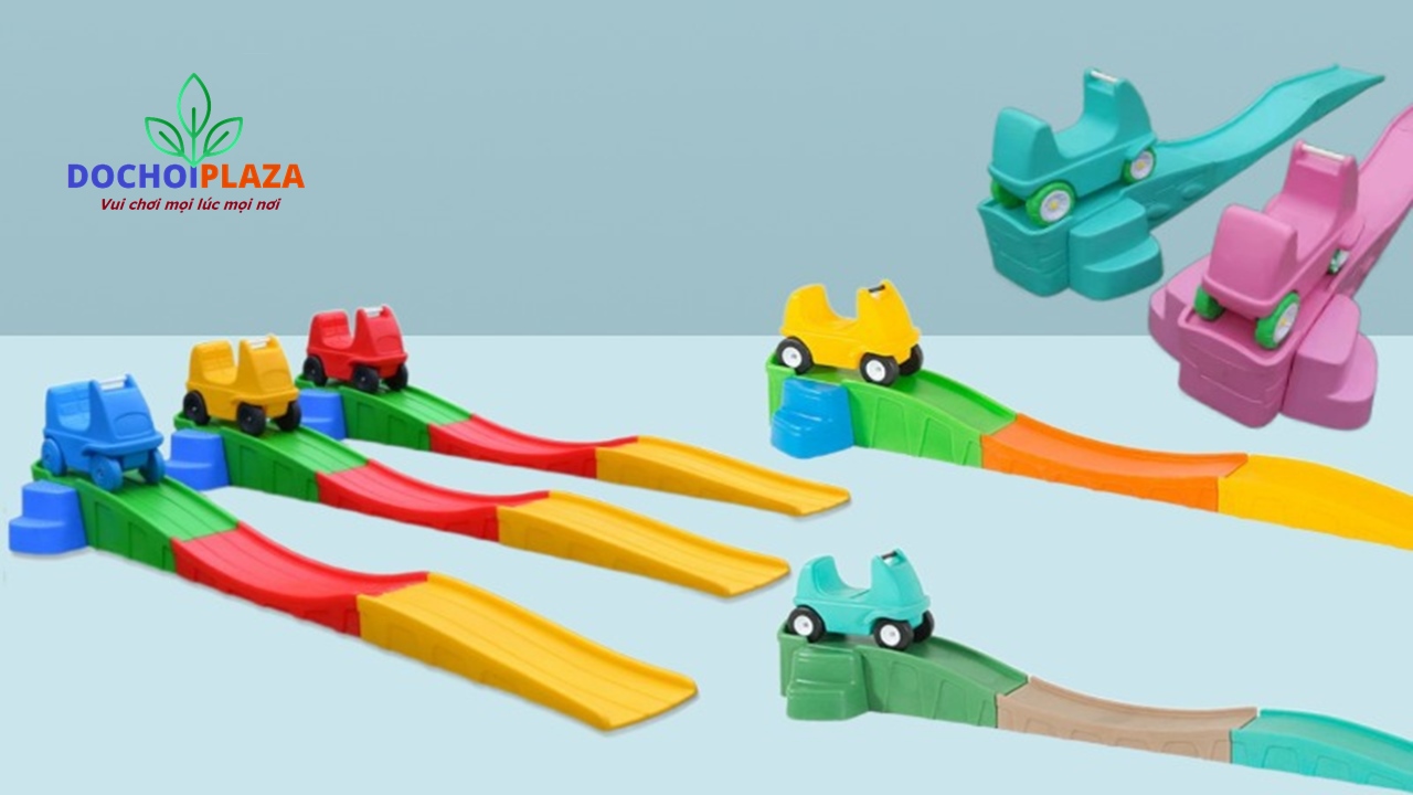 - Có thể mua thêm nhiều xe trượt để nhiều bé cùng trượt nhiều lượt nhanh hơn trên cùng đường trượt