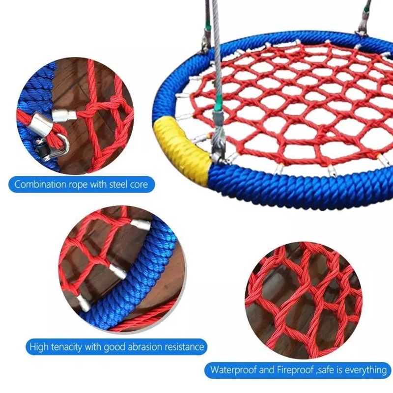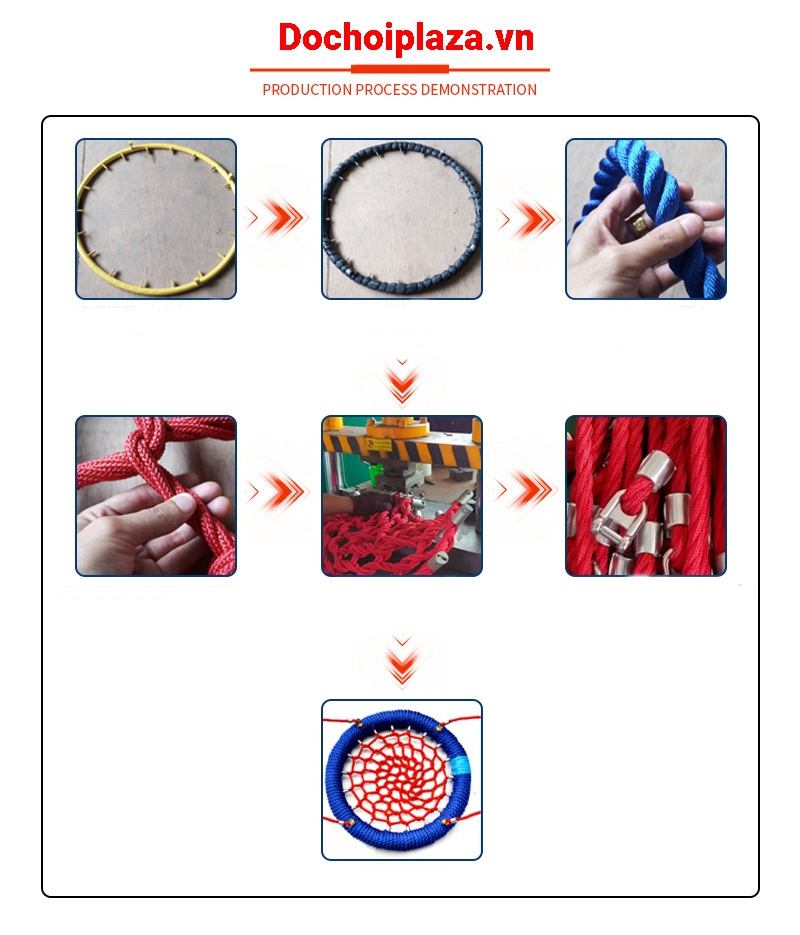 Xích đu tổ chim khung thép được sản xuất hoàn toàn thủ công 100% với chất liệu dây thừng nhập khẩu chuyên dụng – chịu tia uv, an toàn mềm và bền bỉ với không gian ngoài trời. Mà đồ chơi Plaza muốn giới thiệu đến bạn.