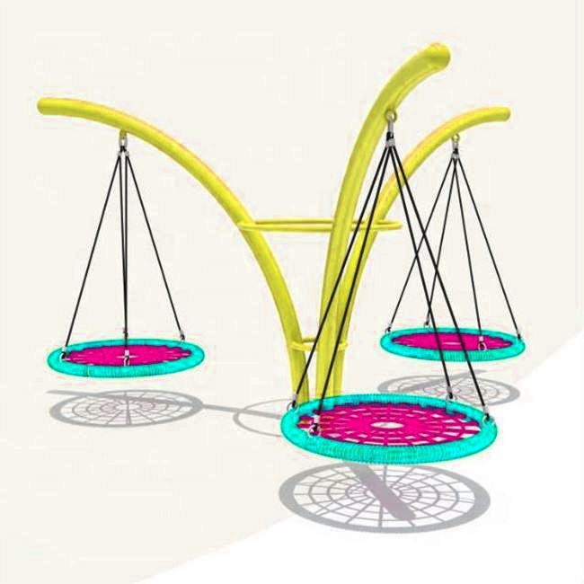 Xích đu ngoài trời khung thép nghệ thuật 3 chỗ XDTCT15 kiến tạo không gian vui chơi ngoài trời độc đáo