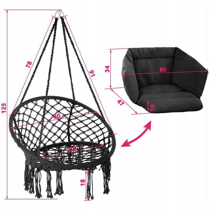 Xích đu Swing cotton màu đen _ Chất liệu an toàn thư giãn thoải mái